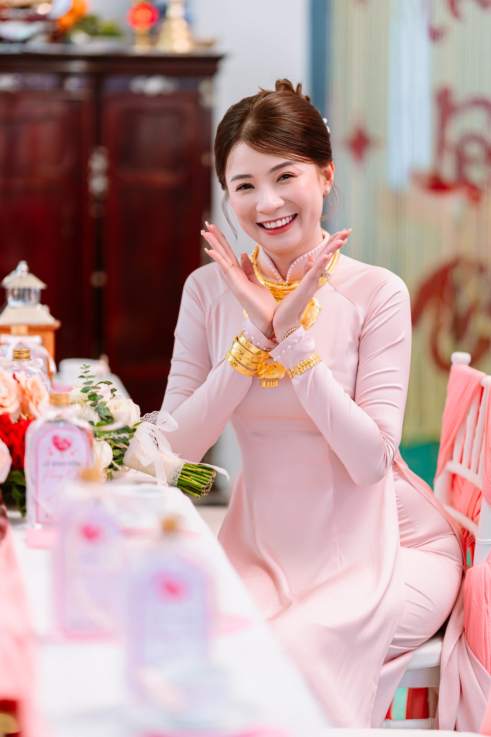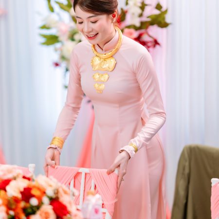 - Chup cô dâu ở bàn gia tiên, và cổng hoa